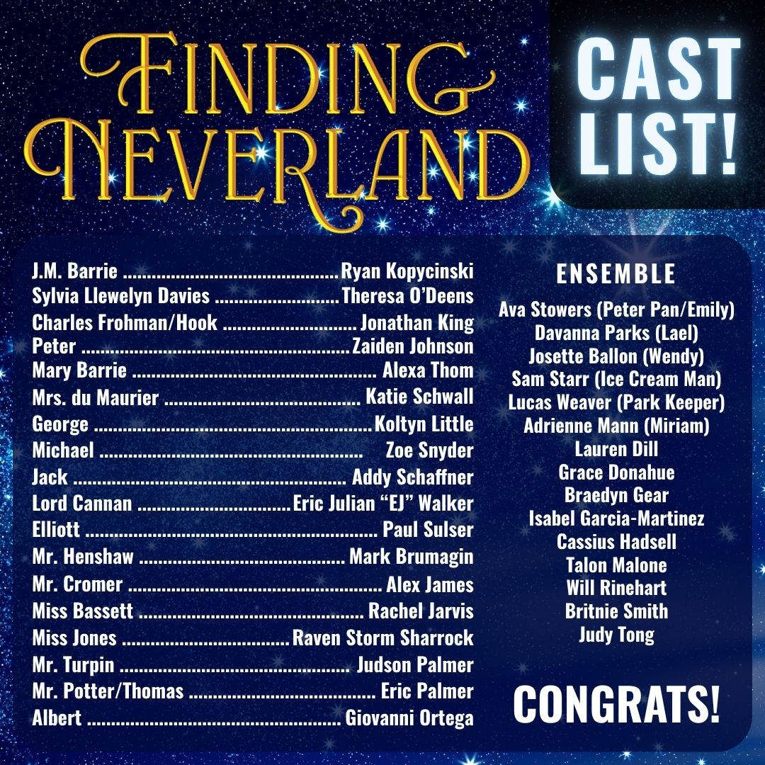 | Thursday, April 2nd | 6:00 PM | AUDITIONS: Finding Neverland | More Info |